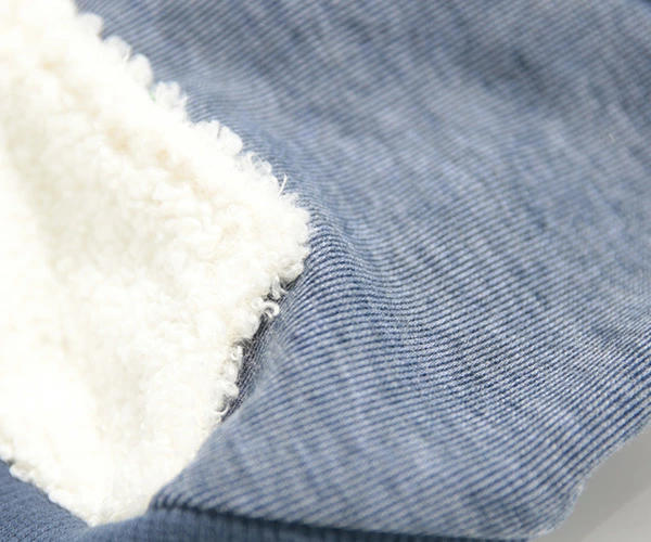 伸縮性の高いデニム風生地のシンプルトレーナー